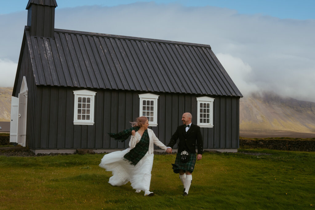 This little black church on the Snæfellsnes Peninsula has become one of the most iconic elopement spots in Iceland — and for good reason. It’s simple, beautiful, and surrounded by lava fields, mountains, and sea views. The contrast between the dark church and the soft Icelandic landscape makes it such a stunning place for a ceremony or portraits.