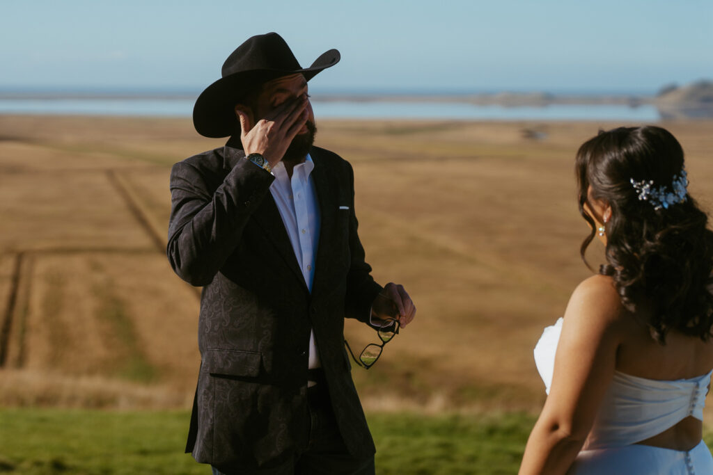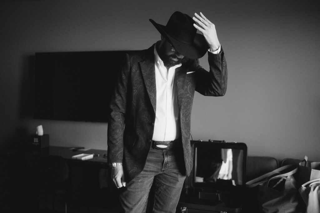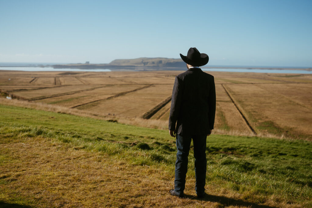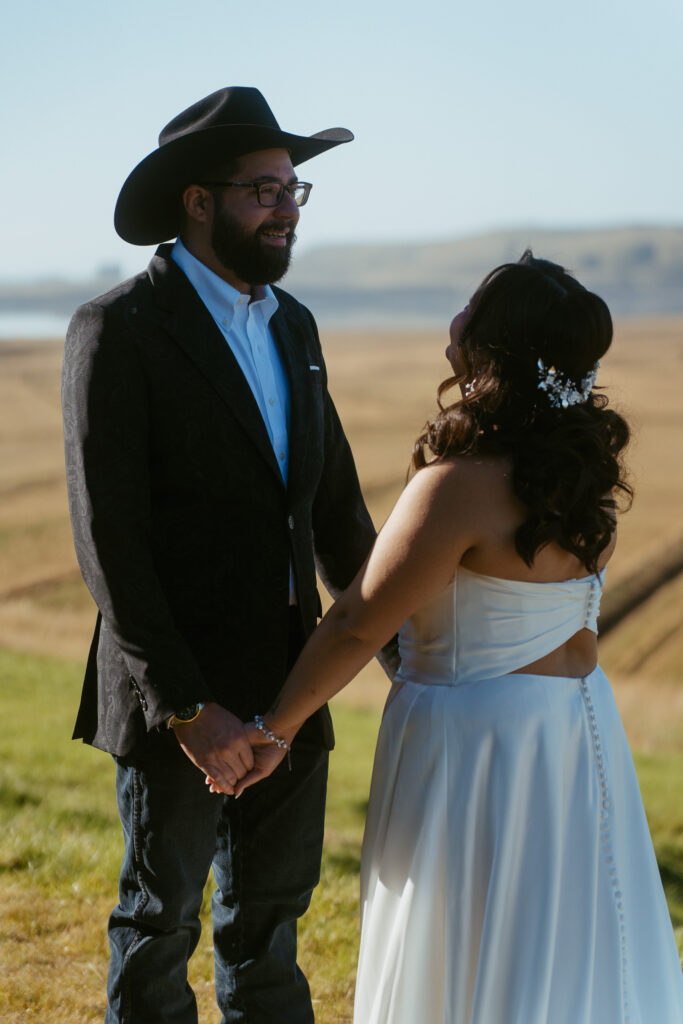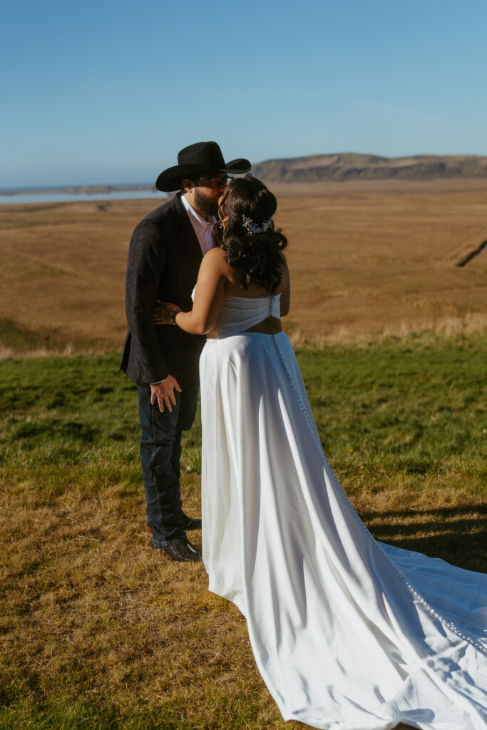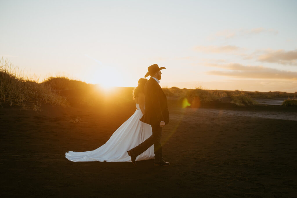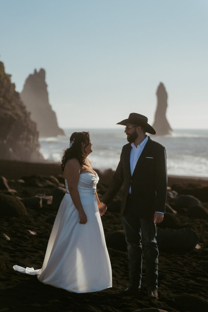 We started the morning at Black Sand Suites, where Cathy and Sheldon got ready and shared their first look in the bright late-September sun. The light was golden and warm (as warm as Iceland gets), and you could already feel how special the day would be. He wore his cowboy hat and boots — a little Texas touch that somehow felt right at home against the Icelandic backdrop.